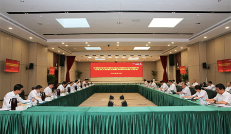 5月24日,,,,,金年会com党委学习贯彻习近平新时代中国特色社会主义头脑主题教育念书班圆满结班。。。。。。。金年会com党委书记、董事长、主题教育向导小组组长张志勇主持聚会并作念书班总结讲话。。。。。。。国资委第十一巡回指导组副组长夏成楼列席聚会并讲话,,,,,指导组成员潘广宜列席聚会。。。。。。。公司向导班子成员、党委委员加入聚会。。。。。。。